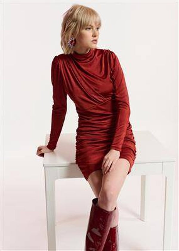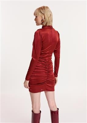 Nauwsluitende jurk vervaardigd van een comfortabel stretch jersey dat gedrapeerd is en in zachte ruches samenkomt om de buste en taille extra definitie te geven. Ze is de perfecte blikvanger voor een avondje uit. Combineer de korte lengte met jouw favoriete knielaarzen