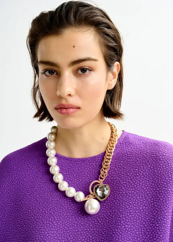 Mini-jurk met coconachtig silhouet, ontworpen met een klassieke ronde halslijn en wijde 3/4-mouwen. Ze is vervaardigd van een mix van gerecyclede polyester en stretch in een weving met subtiel getextureerde afwerking waarbij comfort en stijl naadloos worden gecombineerd.