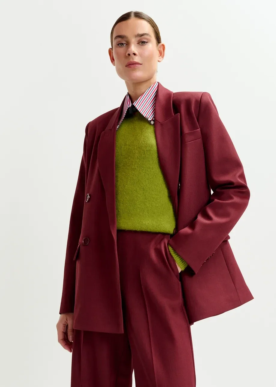 Met zijn relaxte pasvorm en rechte snit straalt deze blazer tijdloze elegantie uit met een speels kantje. Het gekruiste model met dubbele knopenrij is voorzien van schoudervulling voor een gestructureerd silhouet. De blazer met twee klepzakken, borstzakje en revers met inkeping is ook volledig gevoerd voor extra comfort.
